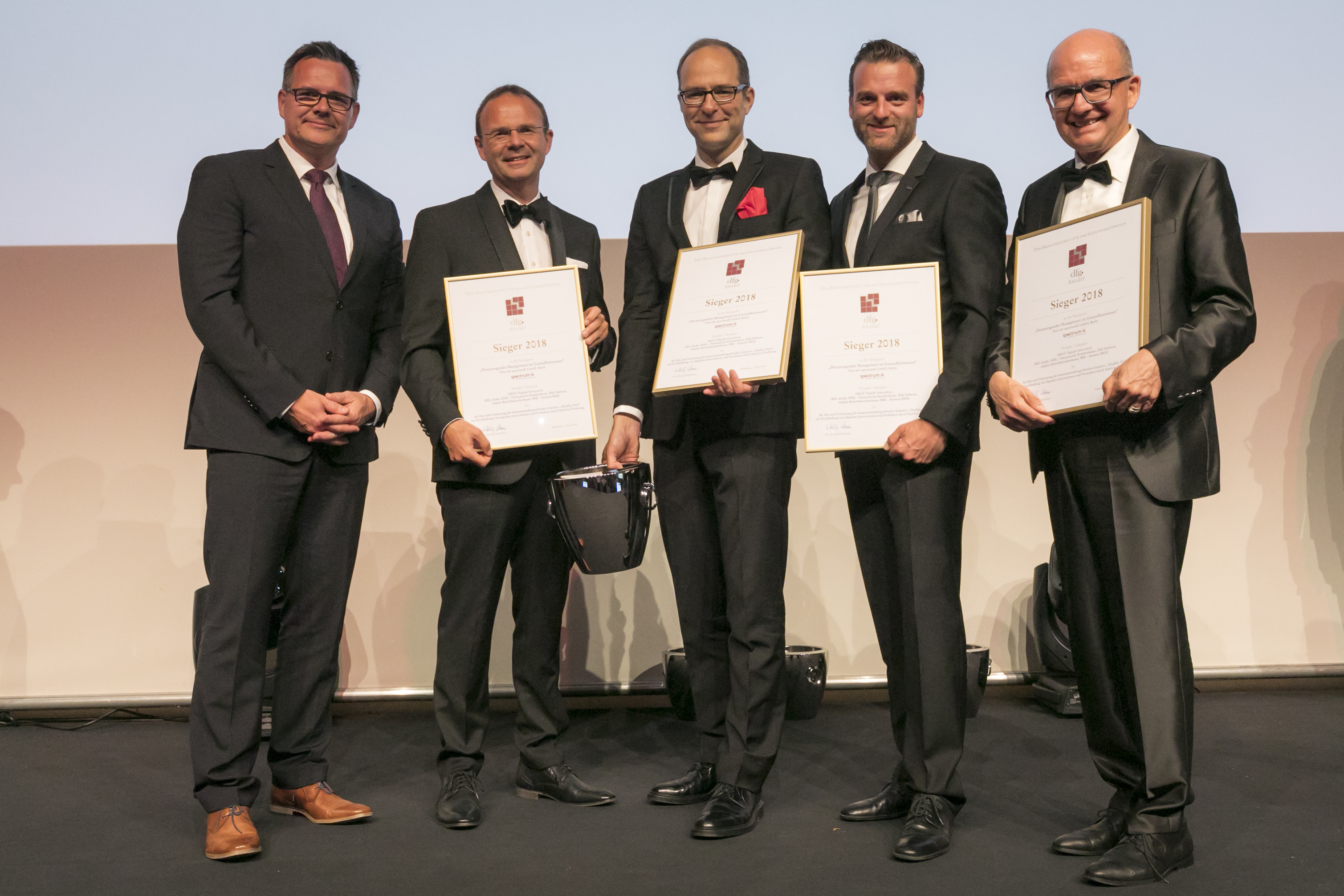 Ein toller Erfolg für den Healthy Hub. Wir haben am vergangenen Donnerstagabend mit dem Healthy Hub den "Oscar des Gesundheitswesens" gewonnen. In der Kategorie "Herausragendes Management im Gesundheitswesen" konnte sich der Hub und die daran beteiligten Partnerkassen vor der Konkurrenz durchsetzen. Hub-Geschäftsführrer Dr. Elmar Waldschmitt nahm bei der feierlichen Gala in Hamburg den Preis entgegen